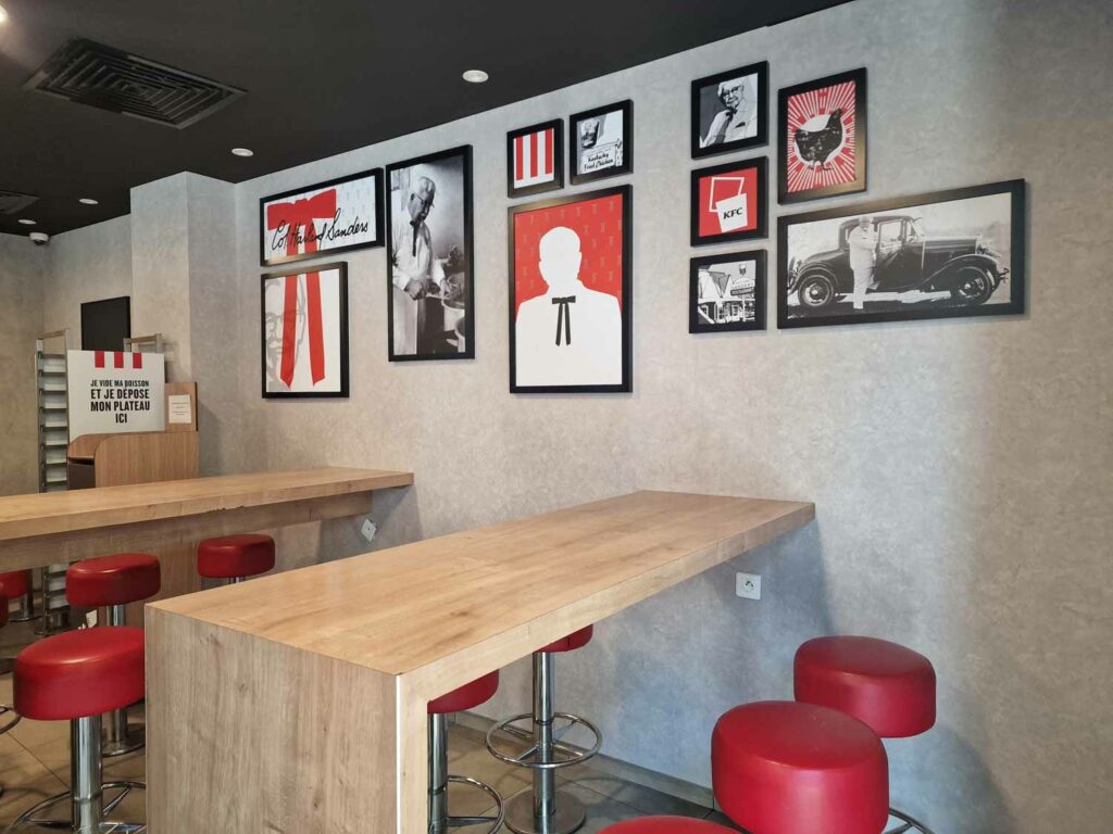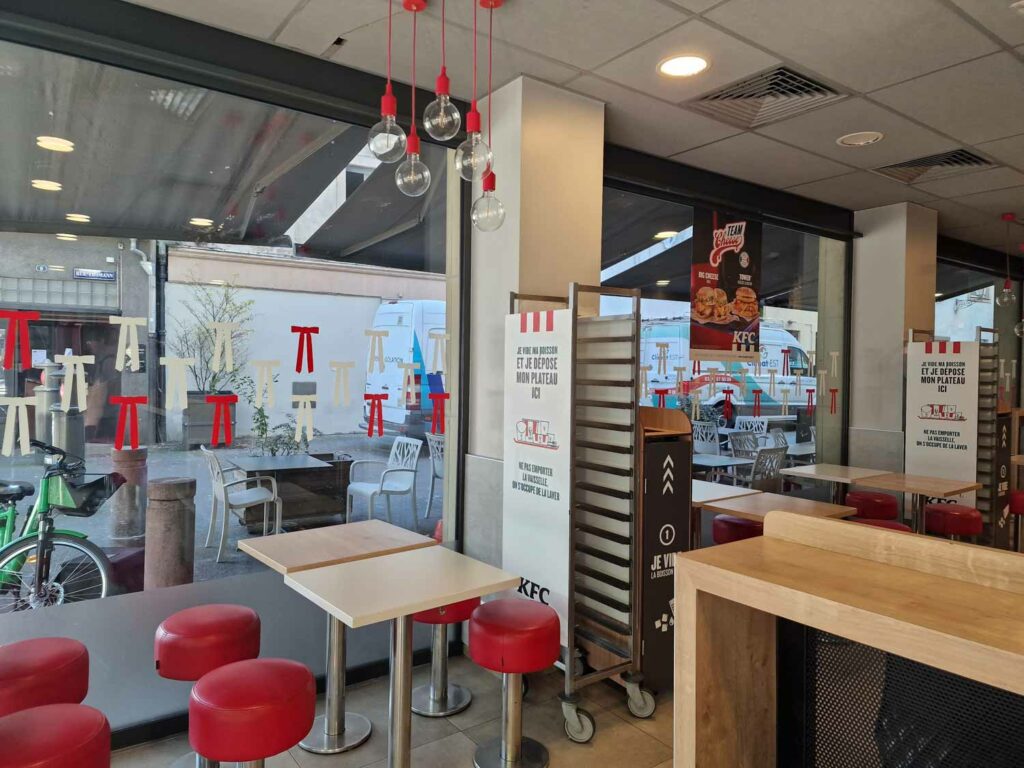 • Décoration intérieure : mise en place d’éléments décoratifs cohérents avec l’identité visuelle de KFC.