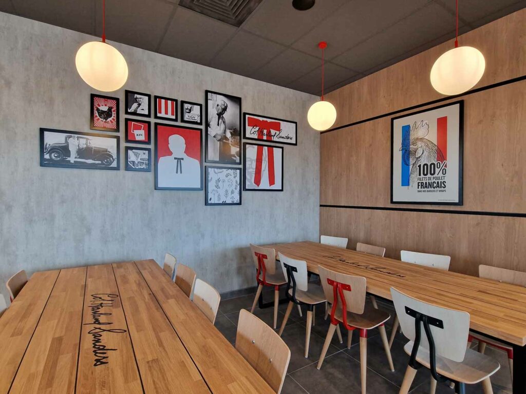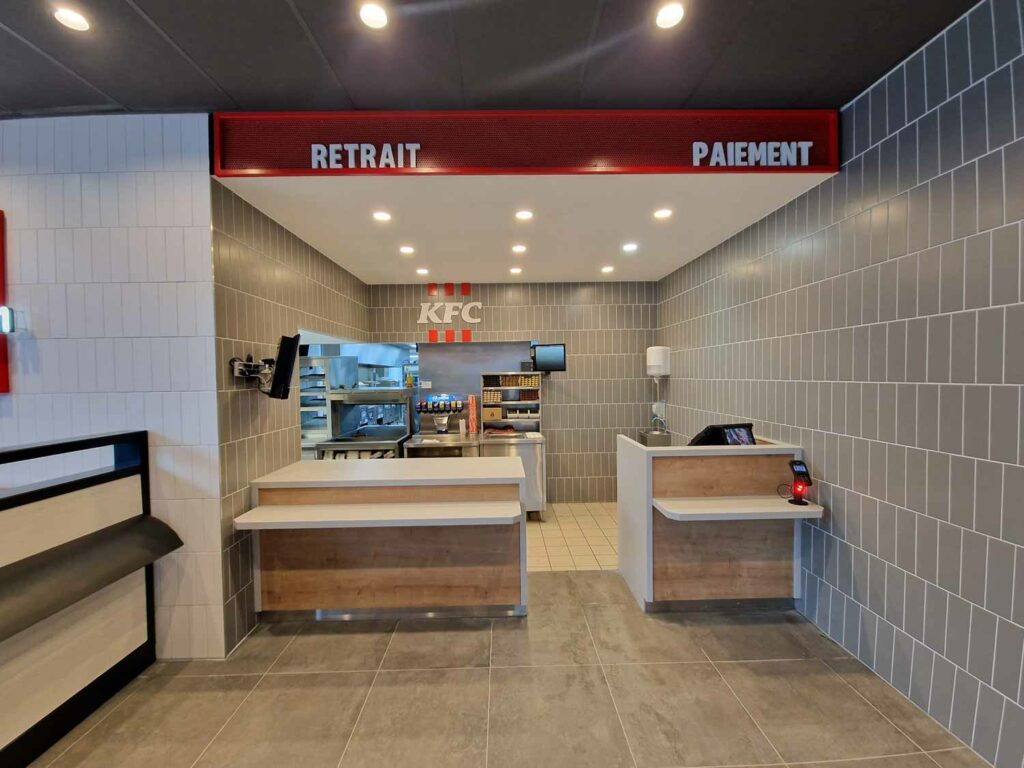 Nous avons récemment accompagné la chaîne KFC dans la rénovation complète de trois de leurs restaurants : Thionville, Strasbourg et Mont-Saint-Martin.
