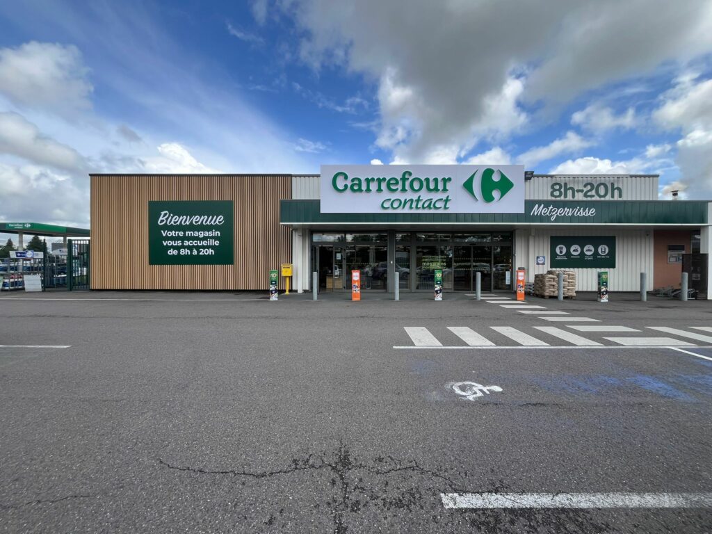 Dans le cadre de la rénovation du magasin Carrefour Contact, notre équipe est intervenue pour une mise en conformité complète des enseignes et de la signalétique, dans le strict respect de la charte graphique du groupe.