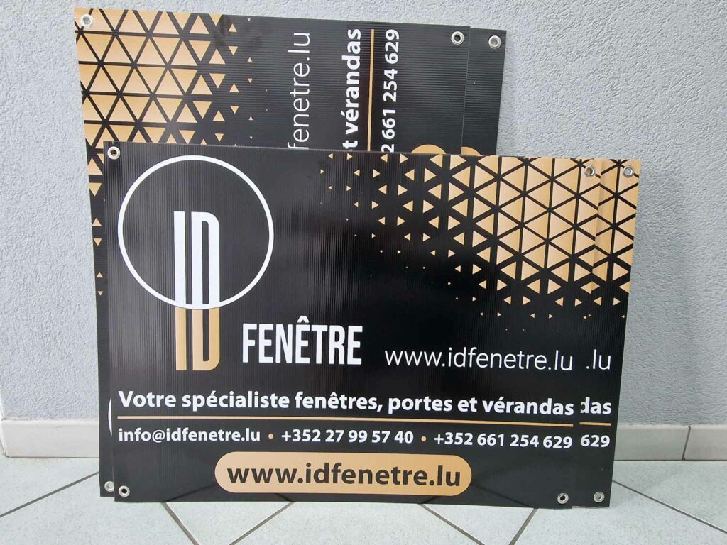 Chaque panneau est entièrement personnalisable afin de refléter votre identité visuelle et répondre précisément à votre besoin : format, couleurs, finition, fixation, matériau… tout est réalisé sur mesure.