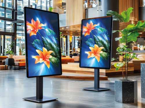 Mettez en avant votre contenu avec nos totems digitaux, panneaux d’affichage LED, écrans muraux et comptoirs interactifs.