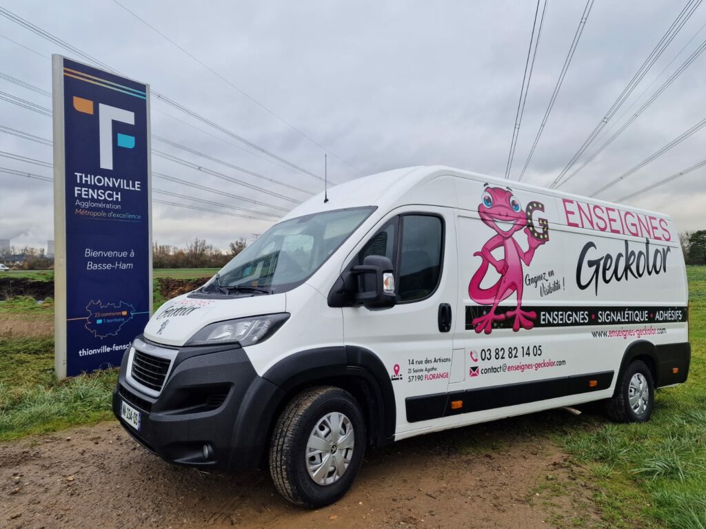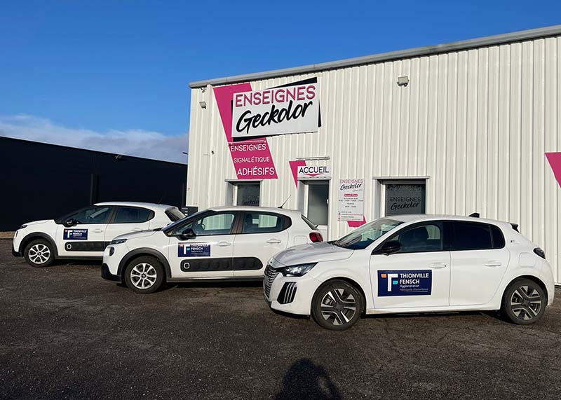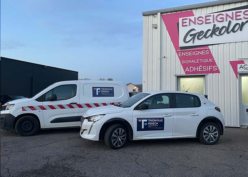 En complément, nous avons réalisé le restickage de 40 véhicules (véhicules légers, utilitaires et camions de collecte), intégrant le nouveau logo Thionville Fensch.